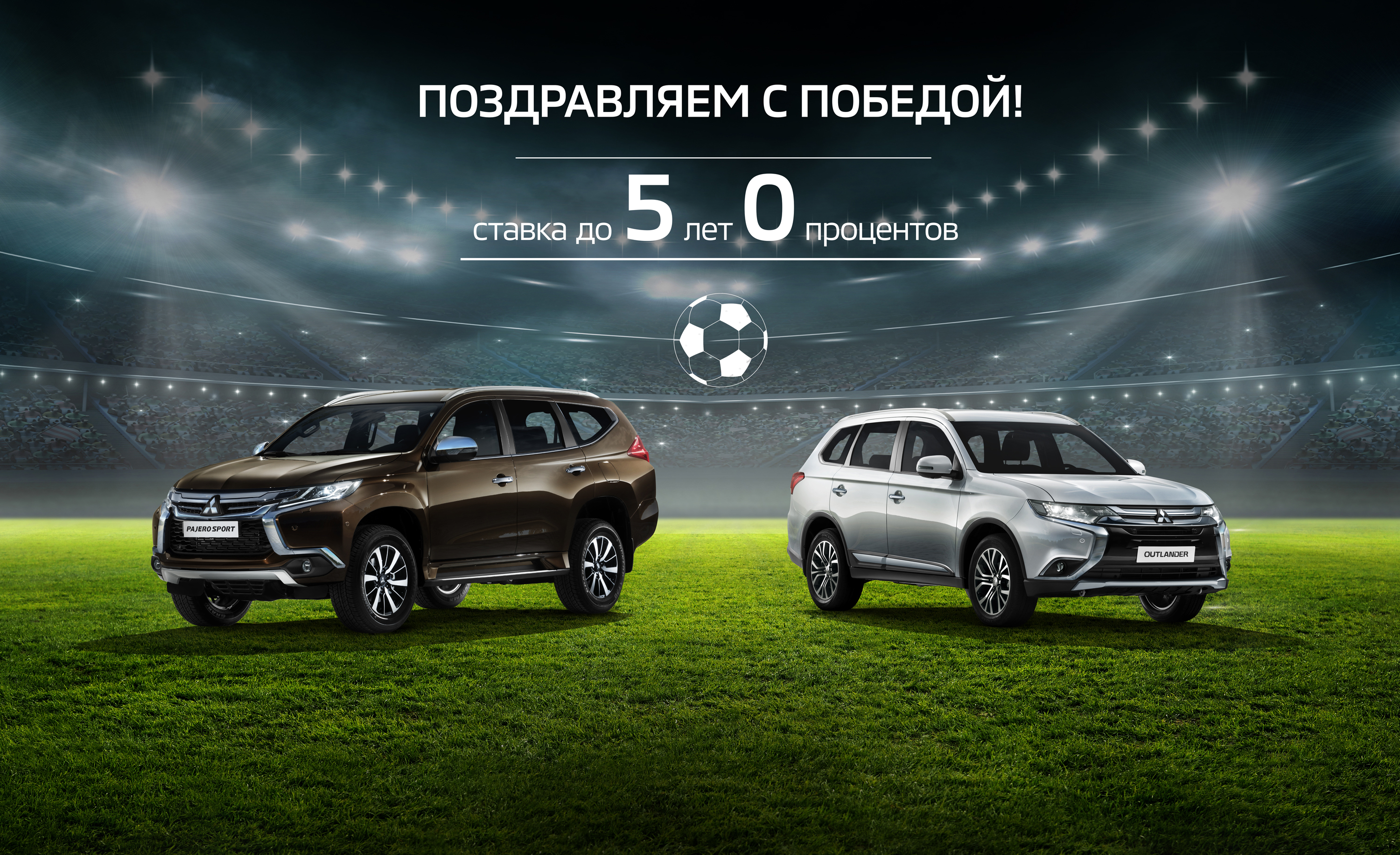 АО МС Банк Рус объявляет о запуске специального кредитного предложения на новые автомобили Mitsubishi Outlander и Mitsubishi Pajero Sport со сроком кредита до 5 лет по ставке 0%1. Воспользоваться кредитным предложением возможно в период проведения Чемпионата Мира по футболу до 15 июля.