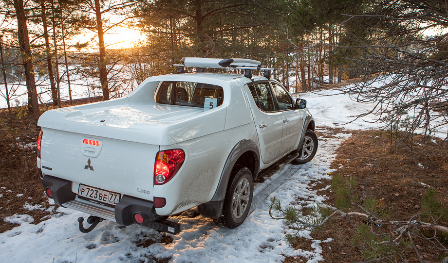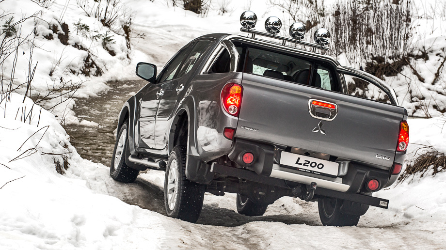 Зато при медленном движении мягкая подвеска, по-внедорожному длинный руль (почти четыре оборота от упора до упора) и полный привод позволяют творить чудеса. Водитель пикапа L200 может сам выбирать направление движения, даже если дороги нет и в помине, стоит лишь подключить передок и задействовать понижающую передачу, а также принудительно заблокировать межосевой и задний дифференциалы. Конечно, в данном случае неплохо бы иметь лебёдку, лопаты и реечный домкрат. Но недаром L200 позиционируется компанией Mitsubishi не только как рабочая лошадка, но и как доступный внедорожник. Бывалые джиперы рассказывали мне, что соплатформенная L200 модель Pajero Sport — едва ли не идеальный вариант для энтузиаста: и базовых возможностей немало, и доработки не требуют существенных вложений.