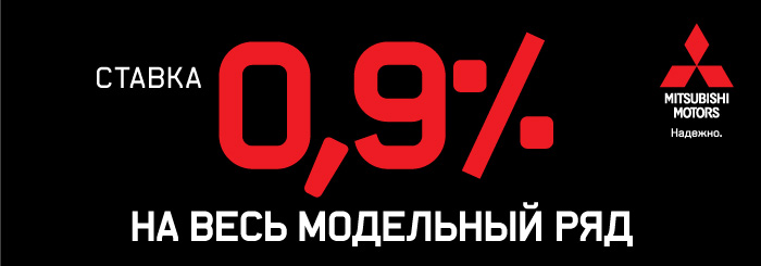 Акция «Кредитное предложение 0,9%» реализуется компанией «РОЛЬФ Импорт», эксклюзивным дистрибьютором Mitsubishi Motors в России, в сотрудничестве с ведущим банком-партнером ЮниКредит Банк (Генеральная лицензия ЦБ РФ № 1 от 20.12.2007 г.), и распространяется на модели - L200, Pajero, Pajero Sport, Outlander XL, ASX, Lancer. Условия кредита удобны и понятны – они позволяют приобрести автомобиль любого класса благодаря диапазону кредитных средств от 85 000 до 4 800 000 рублей, предоставляемых на срок от 3 до 60 месяцев. Комиссия банка включена в сумму кредита, неустойка за несвоевременное погашение задолженности по кредиту - 0,5% за каждый календарный день просрочки от суммы просроченной задолженности. Обеспечением по кредиту выступает приобретаемый автомобиль, который при заключении контракта автоматически страхуется по системе КАСКО.