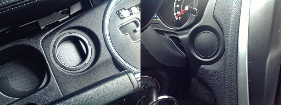 В самой дорогой переднеприводной модификации (с двигателем 1.8 и вариатором; за 1  049  000 рублей) заглушки замещают не только ненужный здесь переключатель 4WD (фото слева), играя роль накопителя для монет, но и подменяют пригодившуюся бы кнопку запуска двигателя.