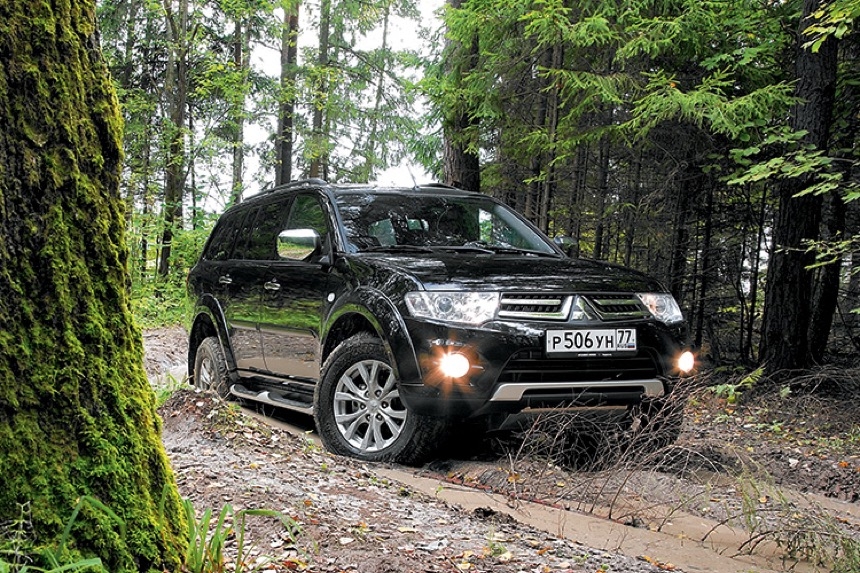 На ходу Pajero Sport неплох. Держит прямую, четко прописывает повороты. Дизель позволяет без надрыва держать крейсерские 120 км/ч и даже выходить на обгоны, заранее «скинув» пару передач подрулевыми лепестками «автомата». Правда, педаль тормоза длинноходна и требует большого усилия при экстренном замедлении, а на разбитом асфальте начинают донимать вибрации неподрессоренных масс. Зато на бездорожье Pajero Sport — боец! Спасибо внушительному дорожному просвету (215 мм до картера заднего моста) и трансмиссии Super Select с понижающей передачей и блокировками межосевого и заднего межколесного дифференциалов. С таким арсеналом главным ограничителем по проходимости становятся шины. А основным раздражителем — рулевой механизм: он «длинный» (4,2 оборота от упора до упора) и слишком рьяно передает на баранку удары на кочках.