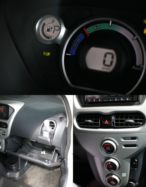 Под капотом Аймиева двигателя нет. Вторая по дороговизне составляющая машинки — «построенный по космическим технологиям» электромотор мощностью 47 кВт (64 л.с.) — прячется сзади. В подкапотном пространстве расположены ёмкость для омывайки, дополнительная маленькая батарея и другие важные мелочи.