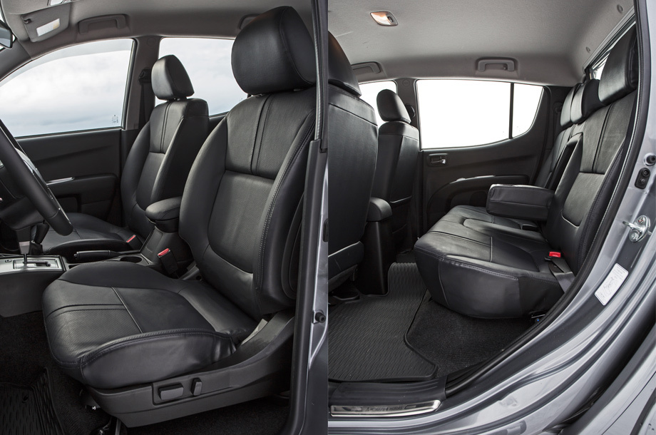 Новое оформление передка вы уже видели: бампер, решётка радиатора и фары — от Pajero Sport. И только базовый L200 остался без изменений. Зато всем версиям теперь положен кузов с 18-сантиметровой прибавкой к грузовому отсеку и более высокими бортами с продольной выштамповкой. В топовой комплектации появились кожаная отделка сидений, мультифункциональный руль, круиз-контроль, аудиосистема с USB-разъёмом и поддержкой айфона. Стало больше подушек безопасности — добавили боковые эйрбэги и «шторки» на обоих рядах сидений. Наконец L200 стали оснащать системой стабилизации — как показала практика, отнюдь не лишней.