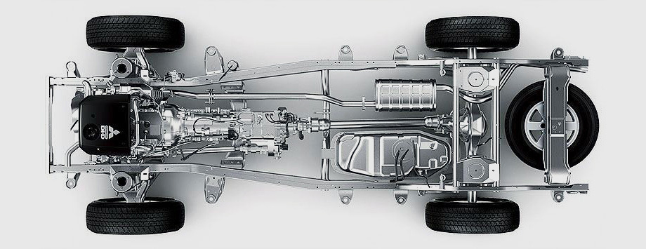 Система полного привода Super Select 4WD снабжена симметричным межосевым дифференциалом, делящим момент по умолчанию поровну между осями и вискомуфтой. Она работает в четырёх режимах: исключительно заднеприводном (2H), c приводом на все колёса (4H) — в этом режиме момент передаётся вперёд через муфту, с заблокированным межосевым дифференциалом (4HLc) и, наконец, с задействованным понижающим рядом. Арсенал можно дополнить блокировкой заднего межколёсного дифференциала, которая активируется отдельной кнопкой. Когда полноприводная трансмиссия работает со всеми блокировками, автоматически отключается не только система контроля тяги, но и система стабилизации.